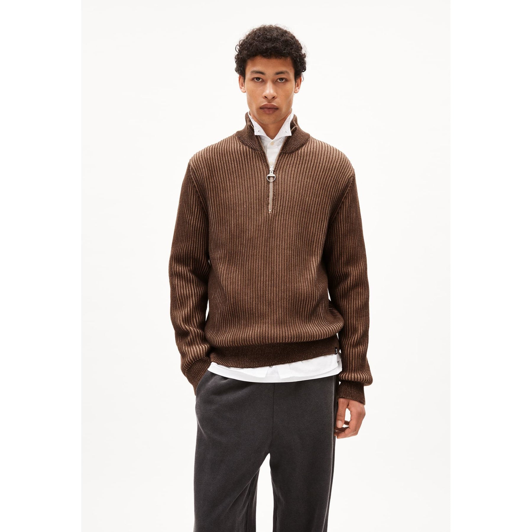 Der MAATEY Strickpullover aus grobem Strick und einer komfortablen, natürlichen Passform bringt Wärme und Lässigkeit in Deinen Alltag. Mit einem Mock-Ausschnitt und praktischem Troyer-Reißverschluss ist er aus 100% Bio-Baumwolle gefertigt – atmungsaktiv und weich, ideal für kühlere Tage.