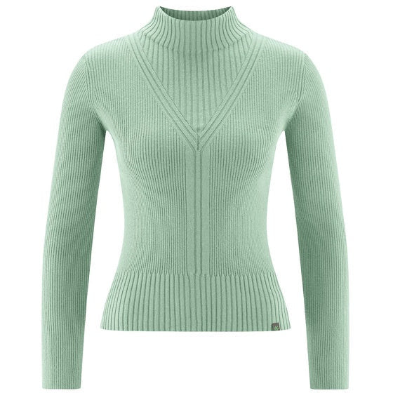 Feminin körpernah anliegend betont der schicke Pullover die schöne Figur mit einem auffälligen Strickmuster. Dazu passt eine hochgeschnittene Palazzo Hose oder für einen sportlichen Look eine legere Jeans.