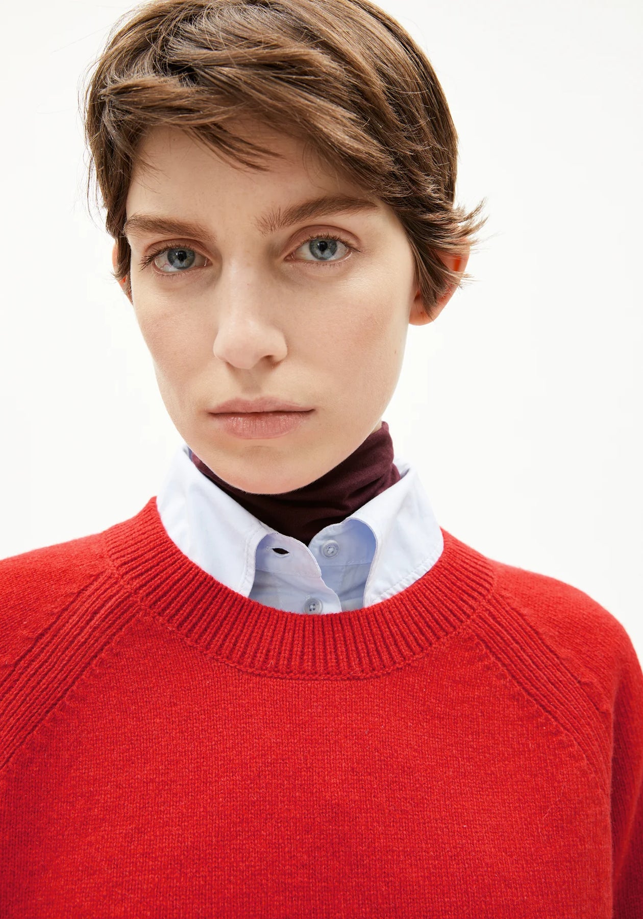 Der LILIRIAA REGLANA Strickpullover aus mittelschwerem Strick ist einfarbig und überzeugt mit lockerem, komfortablem Schnitt. Mit Rundhalsausschnitt und langen Ärmeln bietet die Mischung aus Bio- und recycelter Wolle atmungsaktive Wärme und angenehmen Tragekomfort.