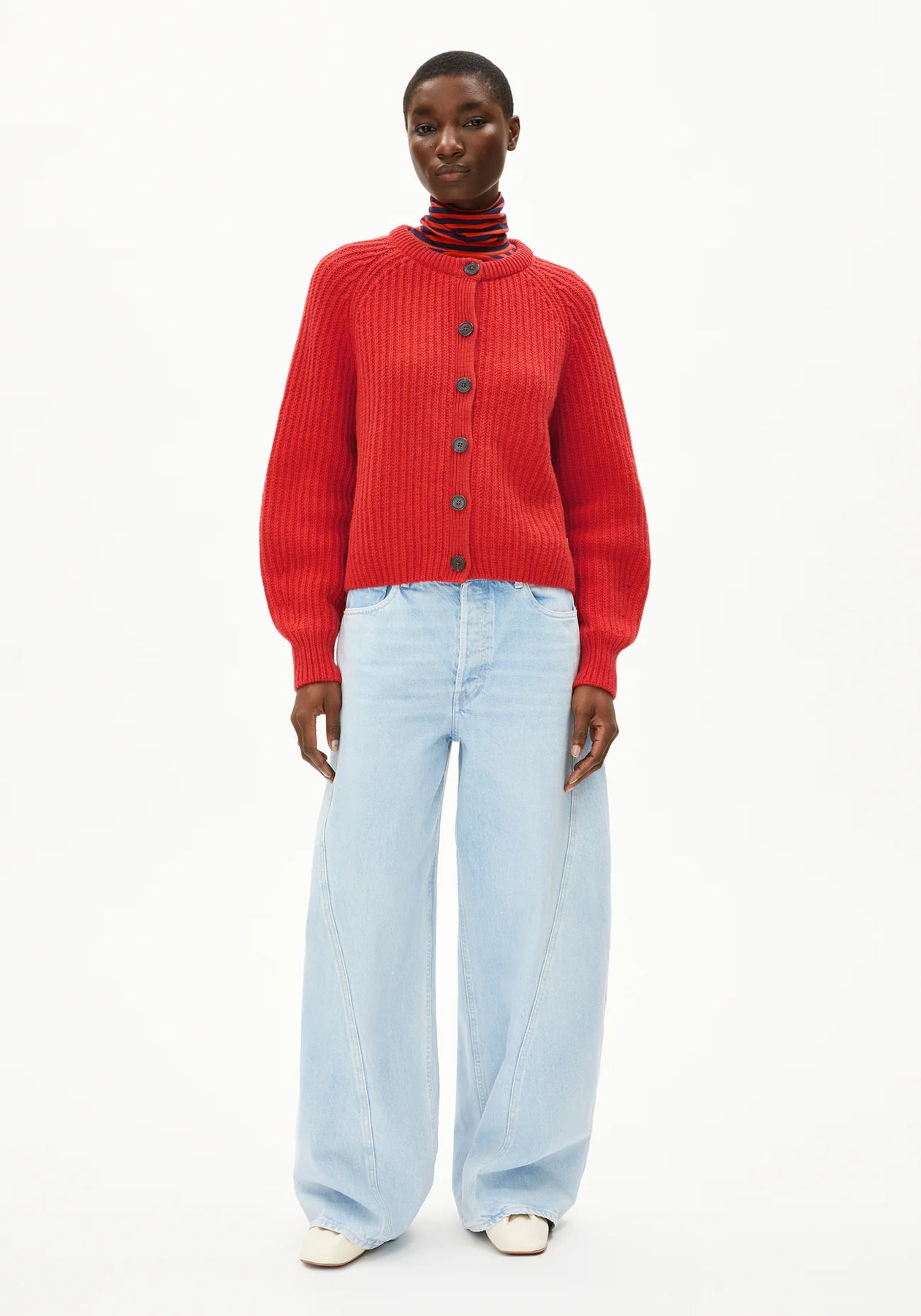 Der Cardigan SELMAA besticht durch Grobstrick mit markanter Rippstruktur und einer entspannten, großzügigen Passform. Die Knopfleiste setzt einen klassischen Akzent, während die Mischung aus Bio-Wolle und Bio-Baumwolle für ein angenehmes Wärmegefühl sorgt.