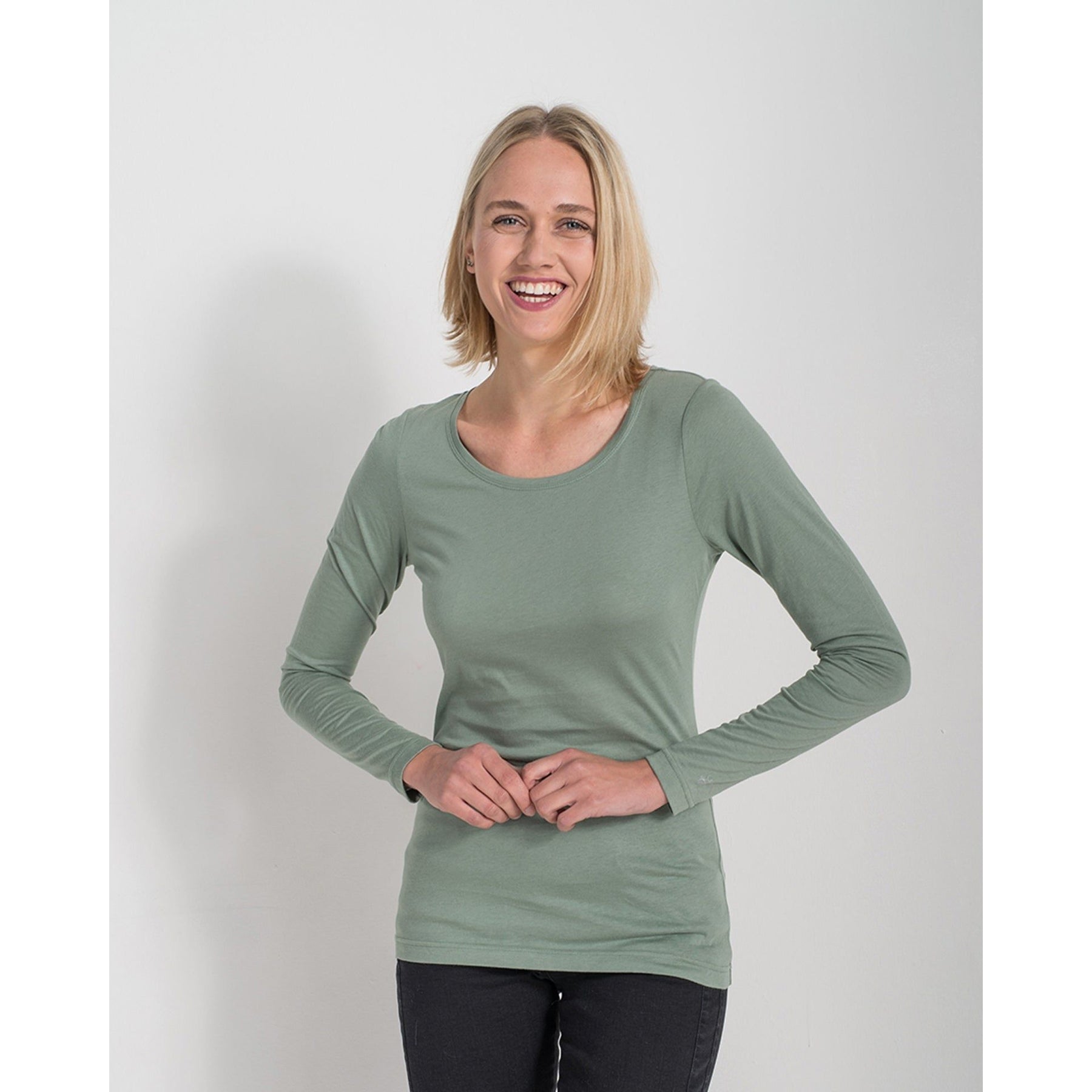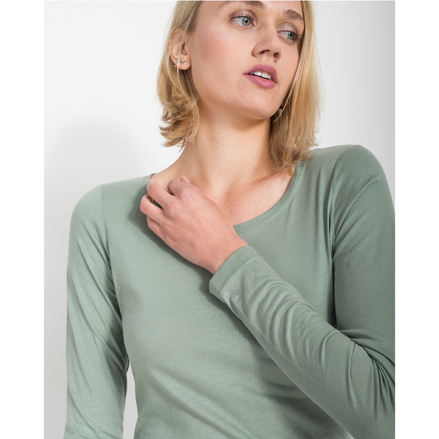 Unser Langarmshirt aus anschmiegsamem feinen Bio-Baumwoll-Jersey garantiert dir absolutes Wohlgefühl. Der Schnitt ist schmal und lang, das gilt auch für die Ärmel! Wir haben es als klassisches Basic entworfen und entsprechend vielseitig kannst du es auch tragen: zum Blazer, zur Jeans, zum Rock oder in der kalten Jahreshälfte auch als Unterziehshirt.