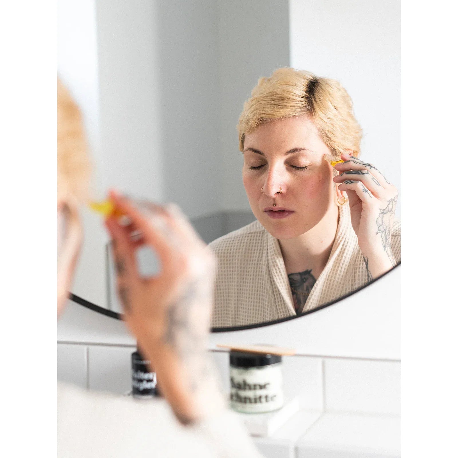Unser frisch & munter kann dir bei Verspannungen oder Schmerzen im Nacken & Kopfbereich helfen. Die betroffenen Stellen können sich durch frisch & munter auf natürlichem Weg spürbar auflösen. Einfach den Roll-on zwei bis drei Mal auf deine Schläfen, deine Schultern oder deinen Nackenbereich streichen, tiiiiiiief einatmen und entspannen.*