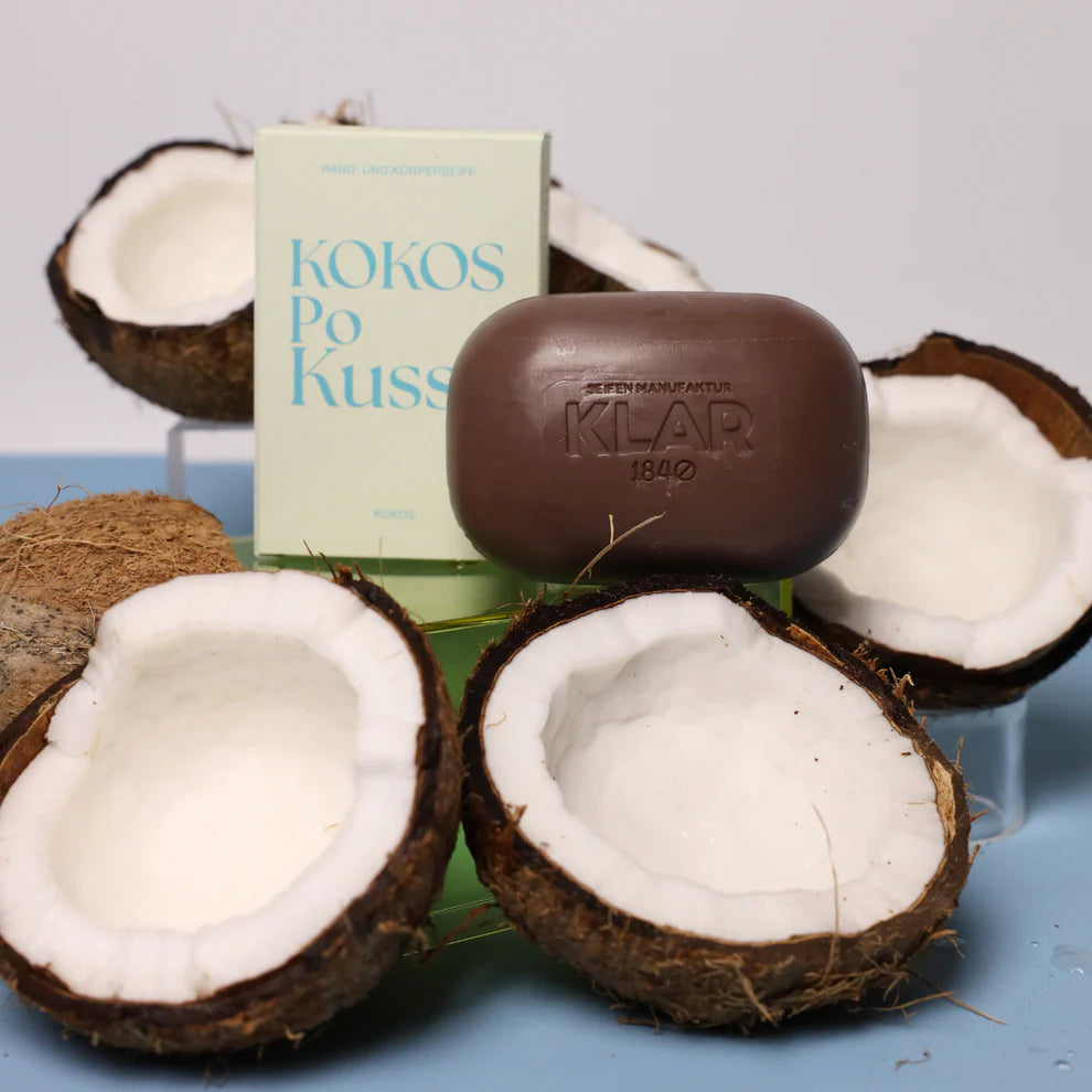 Kokospokus! Klar's Kokosseife zaubert den grauen Alltag einfach weg und dafür exotisches Urlaubsfeeling in die Duschkabine. Die Seife enthält feine Kokosraspeln, die die Haut sanft peelen und für ein sanftes und geschmeidiges Hautgefühl sorgen.
