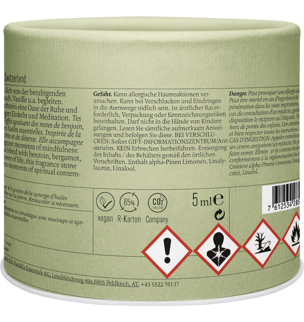 Deine duftenden Momente der Achtsamkeit: Lass dich von der beruhigenden Aromamischung mit Benzoe, Bergamotte, Weihrauch, Vanille u.a. begleiten. Inspiriert von der Blume des Lebens schafft der Duftstein eine Oase der Ruhe und Entspannung und unterstützt Momente der geistigen Einkehr und Meditation. Inhalt: Duftstein aus Keramik mit Unterteller, Aromamischung Meditation.