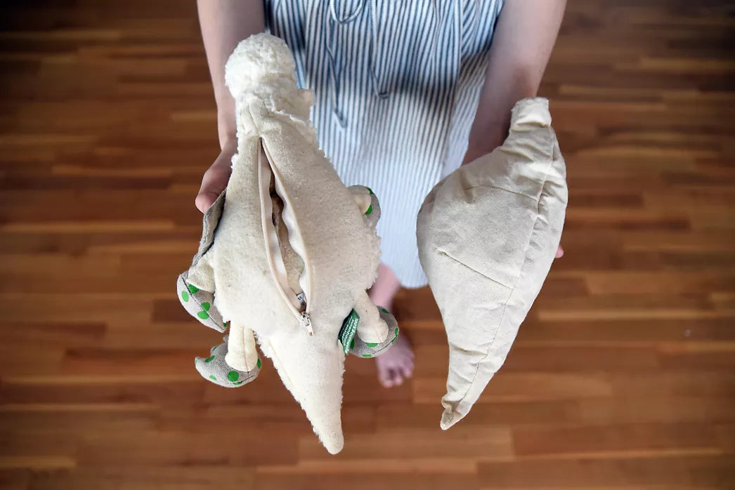 Friederich ist nicht nur ein Drache, er ist ein treuer und friedlicher Begleiter, der Tag und Nacht über seinen Besitzer wacht. Mit seinem kuschelweichen Bauch bietet er eine wunderbare Möglichkeit, sich anzuschmiegen und Geborgenheit zu fühlen. Das Fell besteht aus 100% Baumwolle und ist zu einem flauschigen Flor verarbeitet, der sich angenehm weich anfühlt. Dank eines großen Reißverschlusses an der Unterseite ist der Bezug leicht zu handhaben. Die Waschanleitung empfiehlt für die Hülle eine sanfte Handwäsche bei 30°, während die Naturfüllung im Bauch nicht waschbar ist.