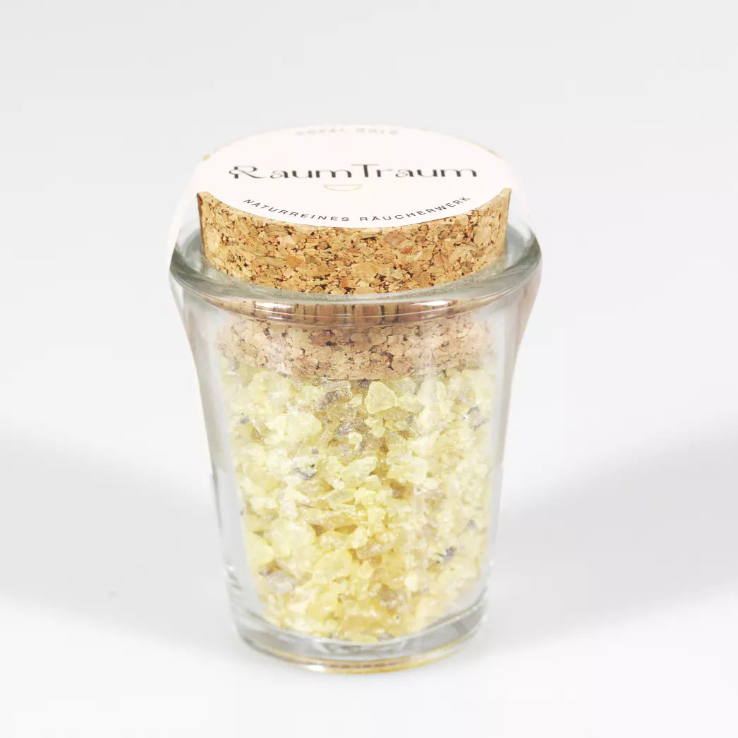 65ml Glas mit Natur- Korkstopfen. Einzelne Handabfüllung in wertvoller Zusammenarbeit des AKS Arbeitskreis für Sozialmedizin sowie Werkstätten mit Fokus auf Integration als Lebenschance. Bevor Sie räuchern, informieren Sie sich über Sicherheitsmaßnahmen und sichere Beendigung Ihrer persönlichen Rituale ohne Brandgefahr.