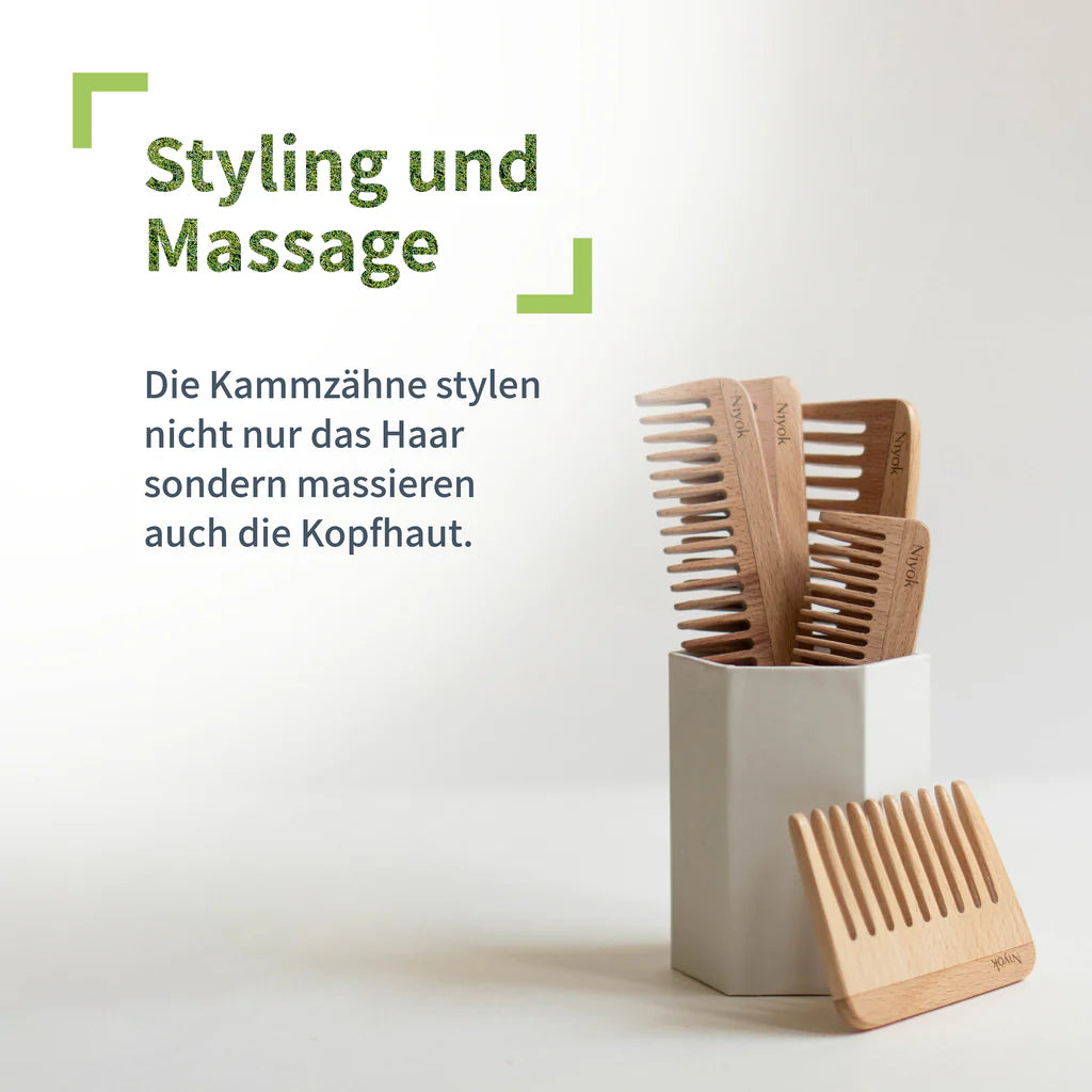Unser Afrokamm, gefertigt aus nachhaltigem Buchenholz, ist ein edles Styling-Tool für die schonende Pflege und Definition von sehr festem, krausen oder dicht gelocktem Haar. Die gleichmäßig weit und lang stehenden Kammzähne sind speziell darauf ausgelegt, die Lockenpracht sanft zu entwirren und Volumen zu verleihen. Dank der antistatischen Eigenschaften von Buchenholz reduziert der Afrokamm Frizz und sorgt für geschmeidig, definierte Locken & Coils. Das natürliche kompakte Design ermöglicht eine einfache und präzise Handhabung, die das Kämmen von Afro-Haar zu einem angenehmen Erlebnis macht. Das robuste und langlebige Buchenholz macht den Kamm leicht und handlich, er ist somit auch für unterwegs der ideale Begleiter und die beste Wahl für alle, die Wert auf eine umweltbewusste und schonende Lockenpflege legen.