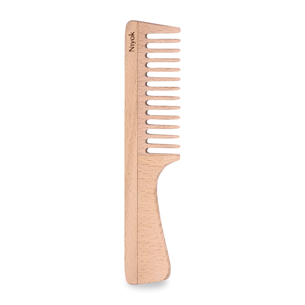 Der Holzkamm mit Griff ist ein unverzichtbares Styling-Accessoire für gesundes und glänzendes Haar. Der Kamm besteht aus hochwertigem Buchenholz. Dieses Material zeichnet sich durch seine Robustheit und Langlebigkeit aus, was den Kamm zu einem zuverlässigen Begleiter für die tägliche Haarpflege macht. Die natürliche, edle Beschaffenheit des Holzes sorgt zudem dafür, dass das Haar beim Kämmen nicht statisch aufgeladen wird. Die abgerundeten Kammzähne gleiten sanft durch das Haar und entwirren es mühelos, ohne es zu beschädigen. Sie sind besonders schonend zur Kopfhaut und verhindern effektiv Haarbruch.