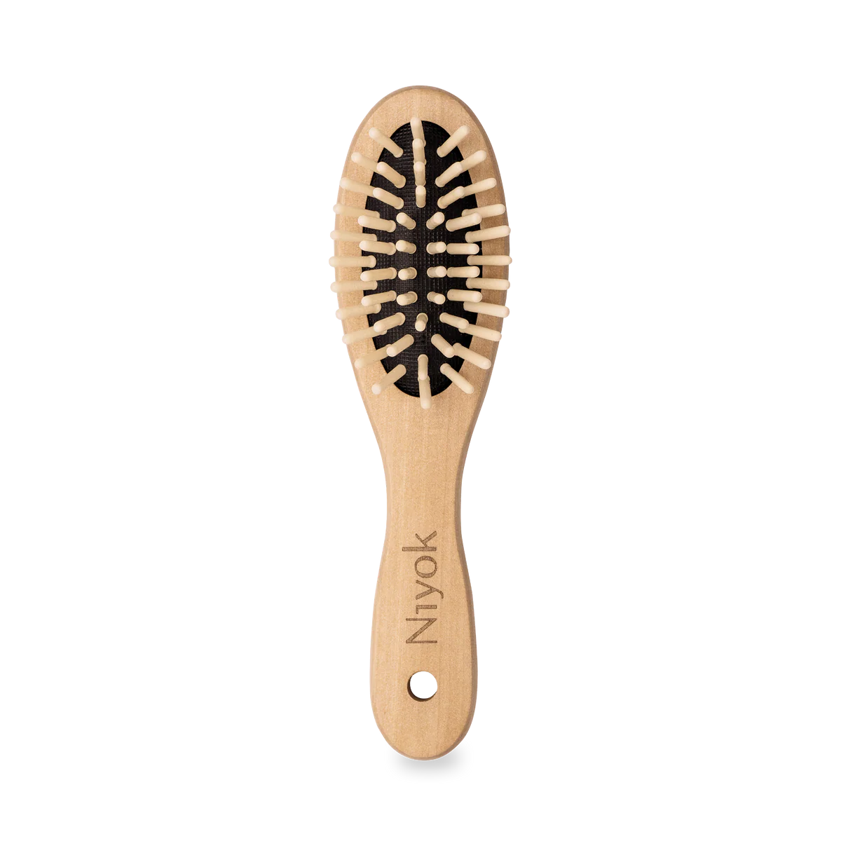 Die kleine Niyok Holz-Haarbürste ist somit ein unverzichtbares Accessoire für die tägliche Haarpflege von Kindern und für alle, die auch unterwegs nicht auf glänzend gepflegte Haare verzichten wollen.
