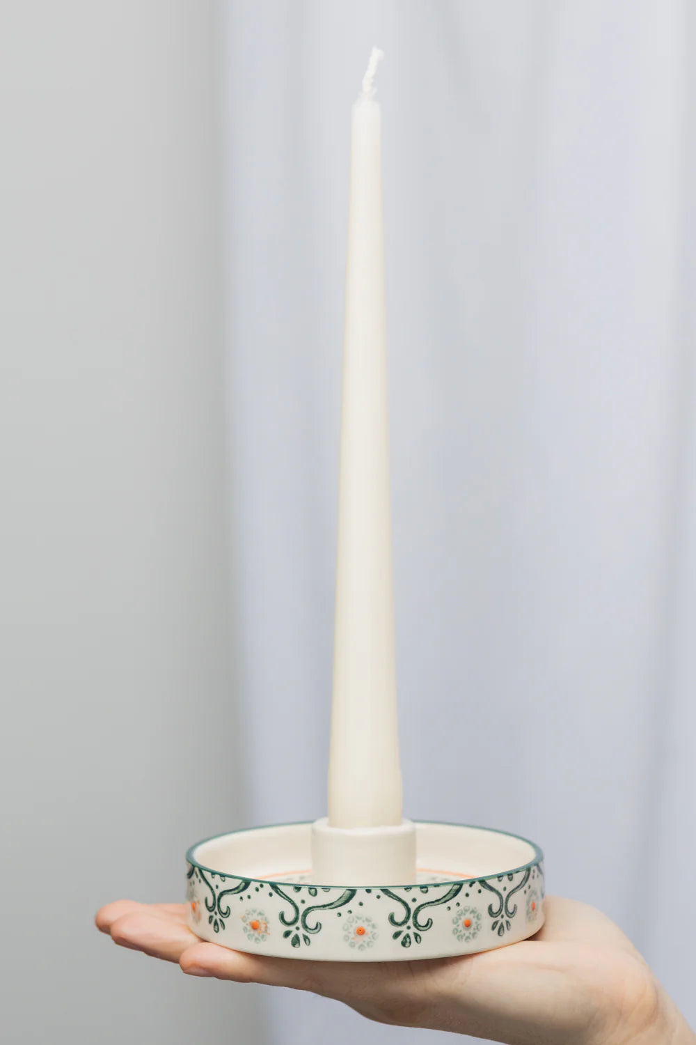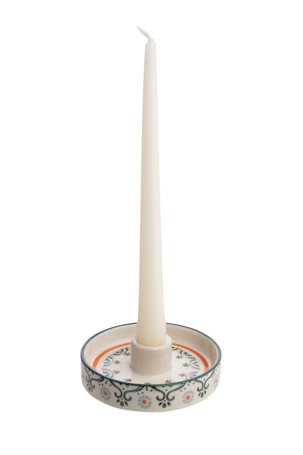 Erlebe dezente Eleganz mit unserem Kerzenhalter für Stabkerzen, verziert durch filigrane handgestempelte Muster mit subtilem traditionellem Charme! Dieser stilvolle Kerzenhalter vereint kunstvolles Design mit praktischer Funktionalität. Die feinen handgestempelten Muster verleihen dem Halter eine ansprechende Ästhetik, ohne dabei zu dominant zu wirken. Ideal für Stabkerzen, wird dieser Halter nicht nur zum eleganten Accessoire, sondern auch zu einer dezenten Bereicherung für jeden Raum. Erfreue dich an der zurückhaltenden Schönheit dieses handgefertigten Kerzenhalters. Maße: 11 x 11 x 3 cm Material: Steinzeug