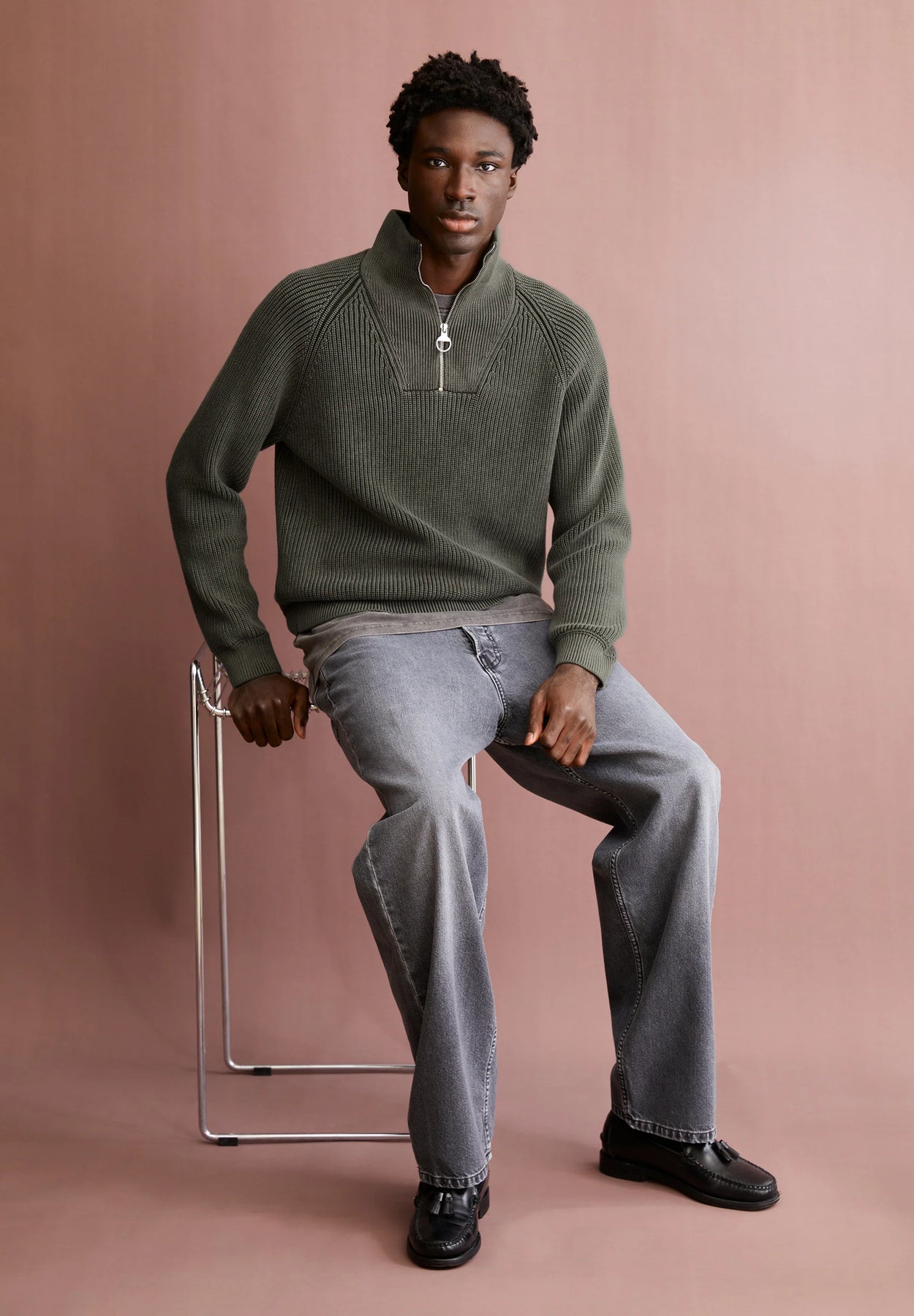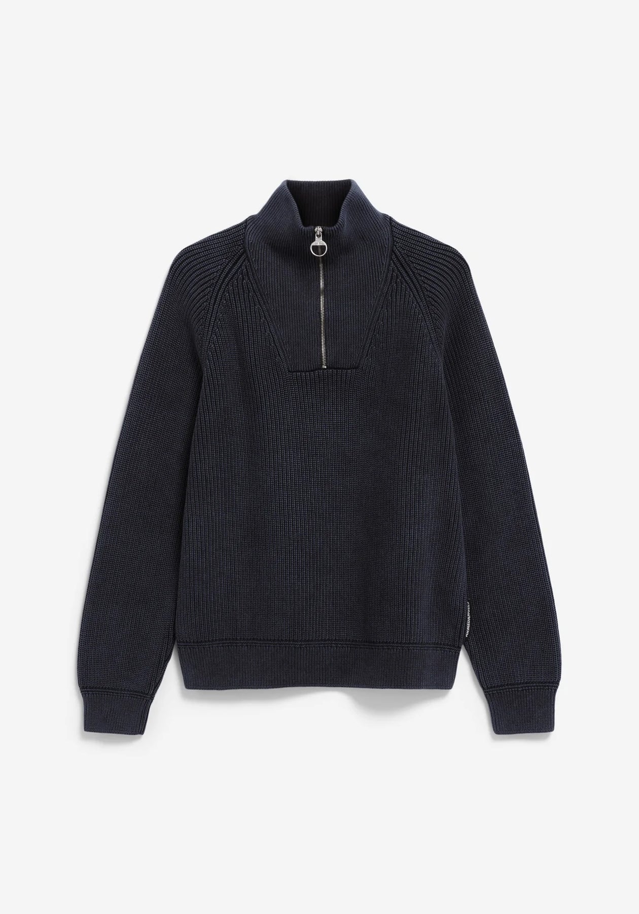 Pullover aus Bio-Der KAALVES GMT DYE Strickpullover aus 100% Bio-Baumwolle hat einen geraden Schnitt und einen hohen Kragen mit Reißverschluss. Das Troyer-Design macht ihn zu einem vielseitigen Klassiker und sorgt für bequemen Tragekomfort